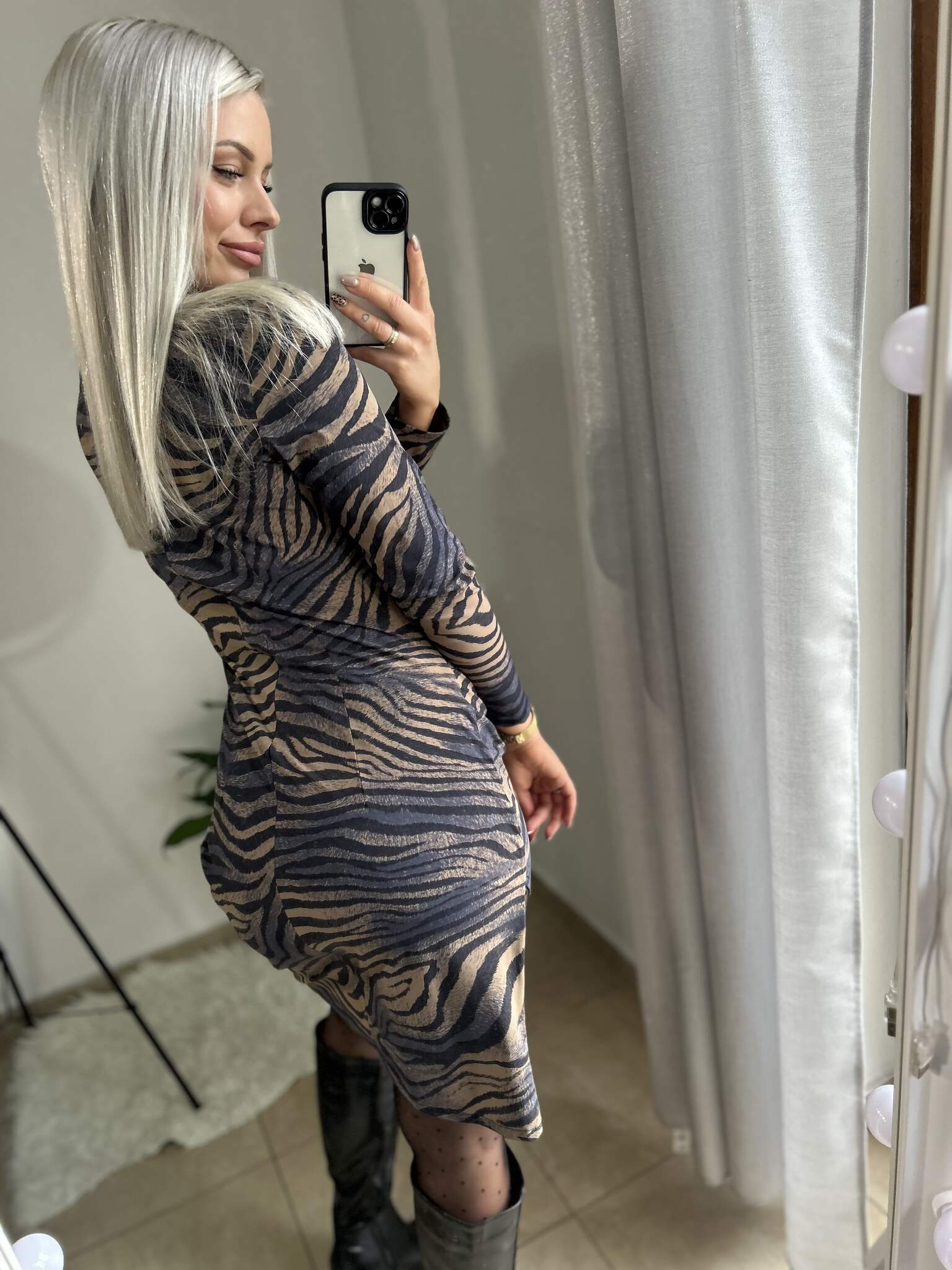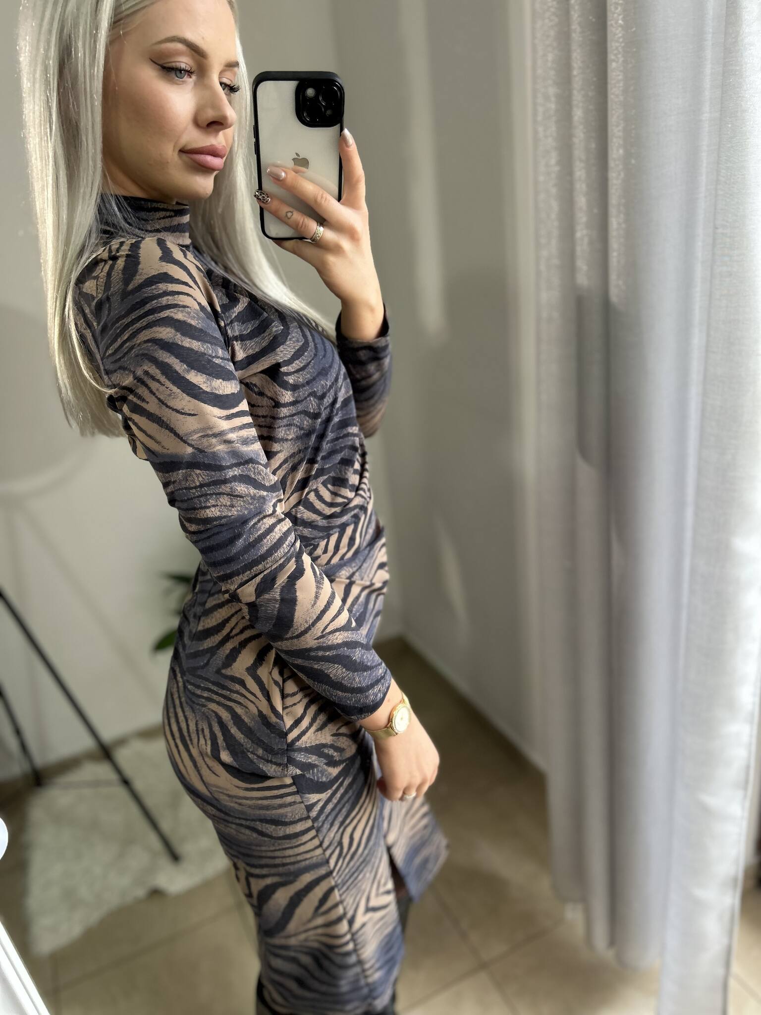 + wysyłkaSukienka w długości 3/4 z rozporkiem na nodze. Marszczenie w pasie długi rękaw