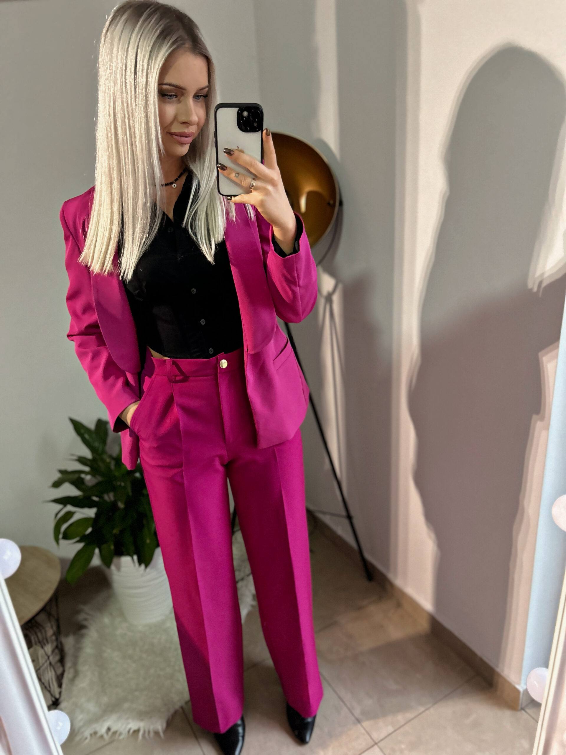 Garnitur Ginger to jeden z kompletów garderoby, który powinien być w każdej dobrze wyposażonej szafie! Jest to bowiem klasyka która sprawdza się w wielu sytuacjach. Ponad to, można dowolnie łączyć i mieszać części tego kompletu! Zobacz jak świetnie możesz wyglądać w spodniach i sweterku Ella! Komplet garniturowy nie zawsze musi być ubierany kompletny! kolejne świetne połączenie to marynarka i spodnie Lorin! Możliwości jest na prawdę wiele! Ale zmierzając do konkretów. Marynarka jest modelem taliowanym, dość dopasowanym. z półokrągłymi klapami i zapinany na jeden prawie niewidoczny guziczek. Spodnie zaś są klasykiem. prosta delikatnie poszerzona nogawka z kantem, podniesiony stan, wygodne kieszenie. Wszystko idealnie ze sobą współpracuje.