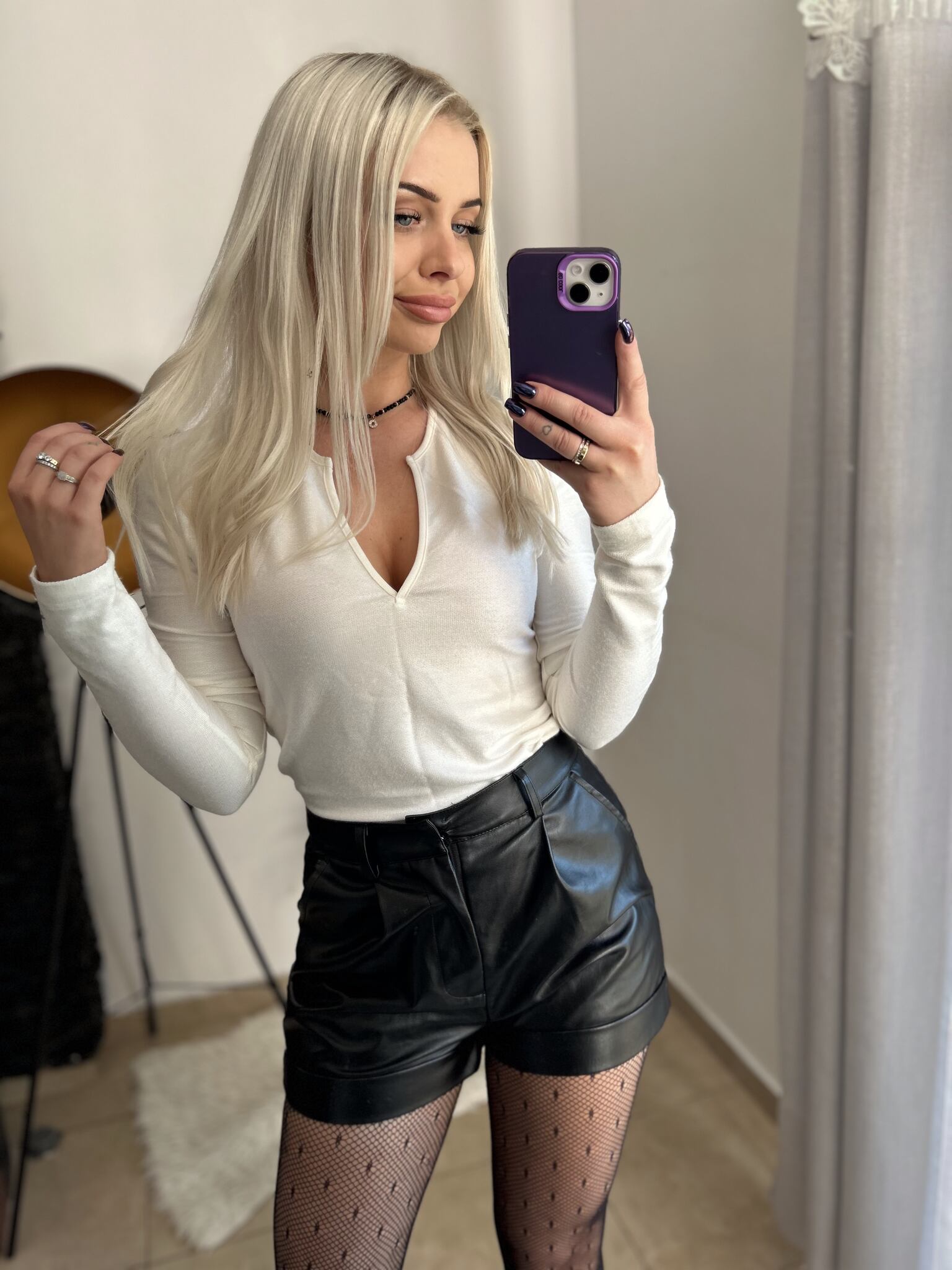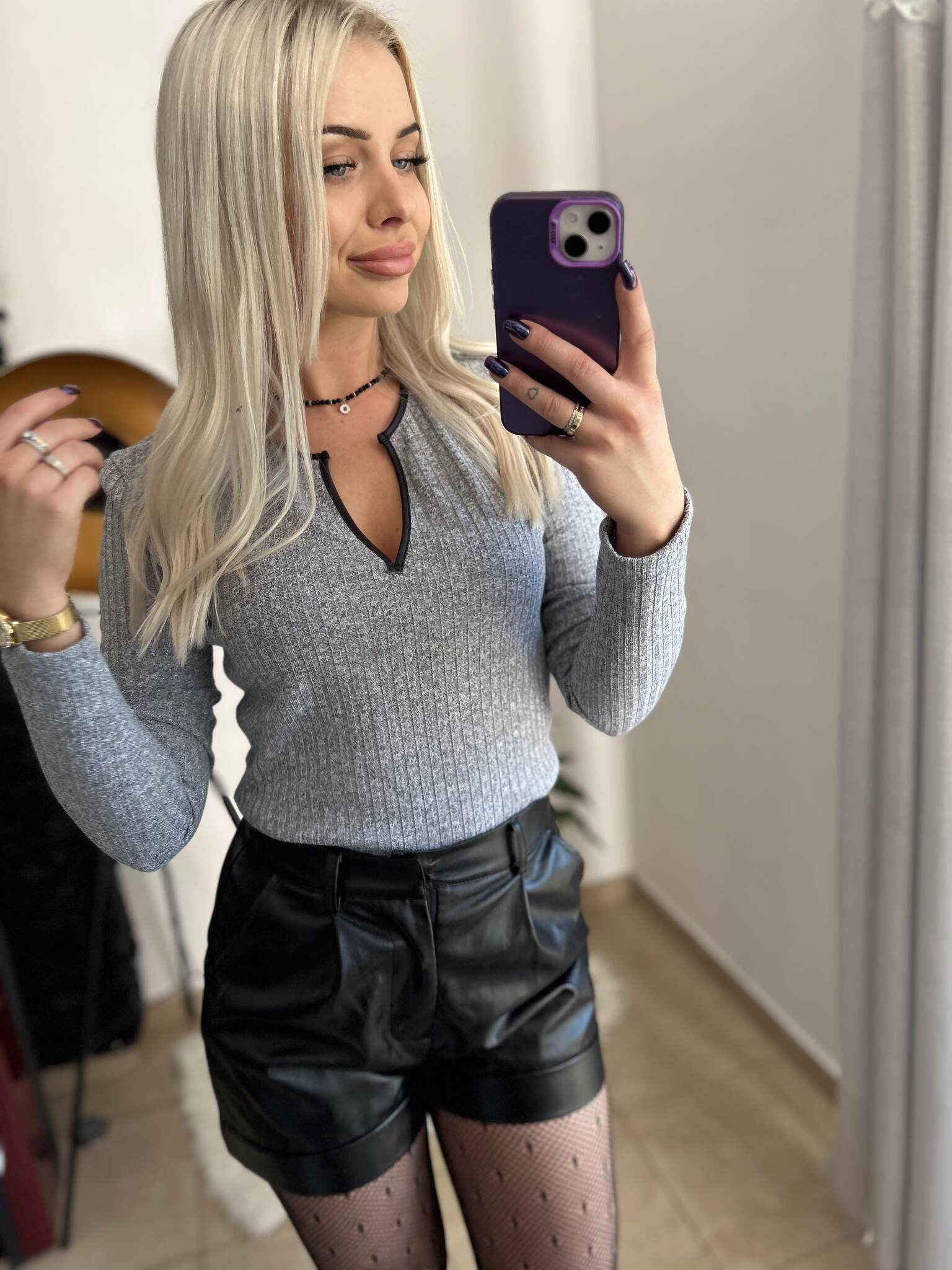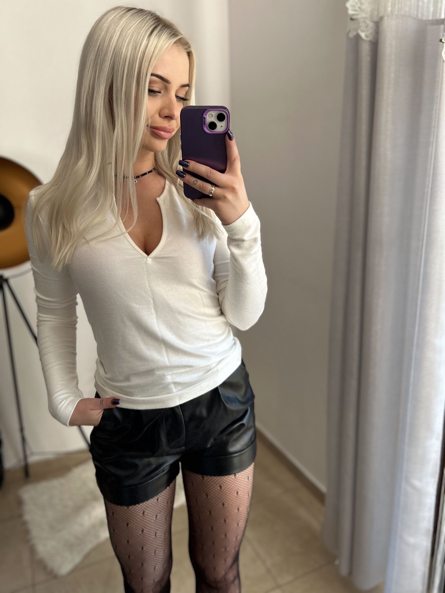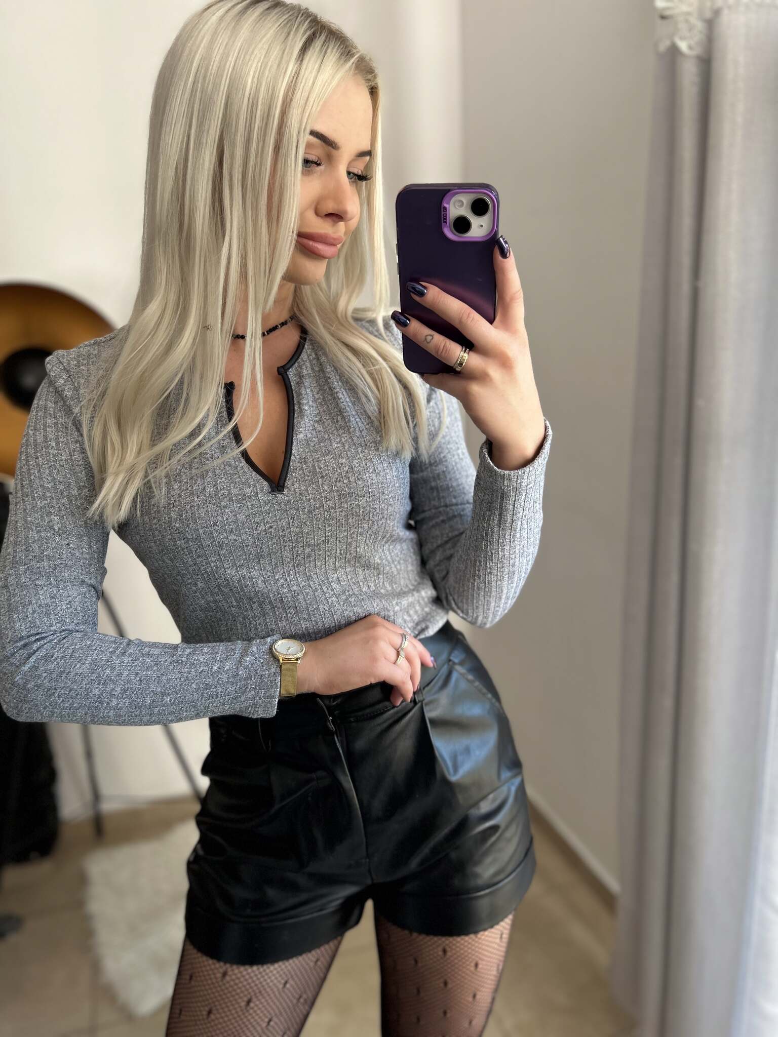 + wysyłkaBluzeczka w trzech kolorach. Długi rękaw, wylamowany dekolt. Świetnie pracuje na ciele.