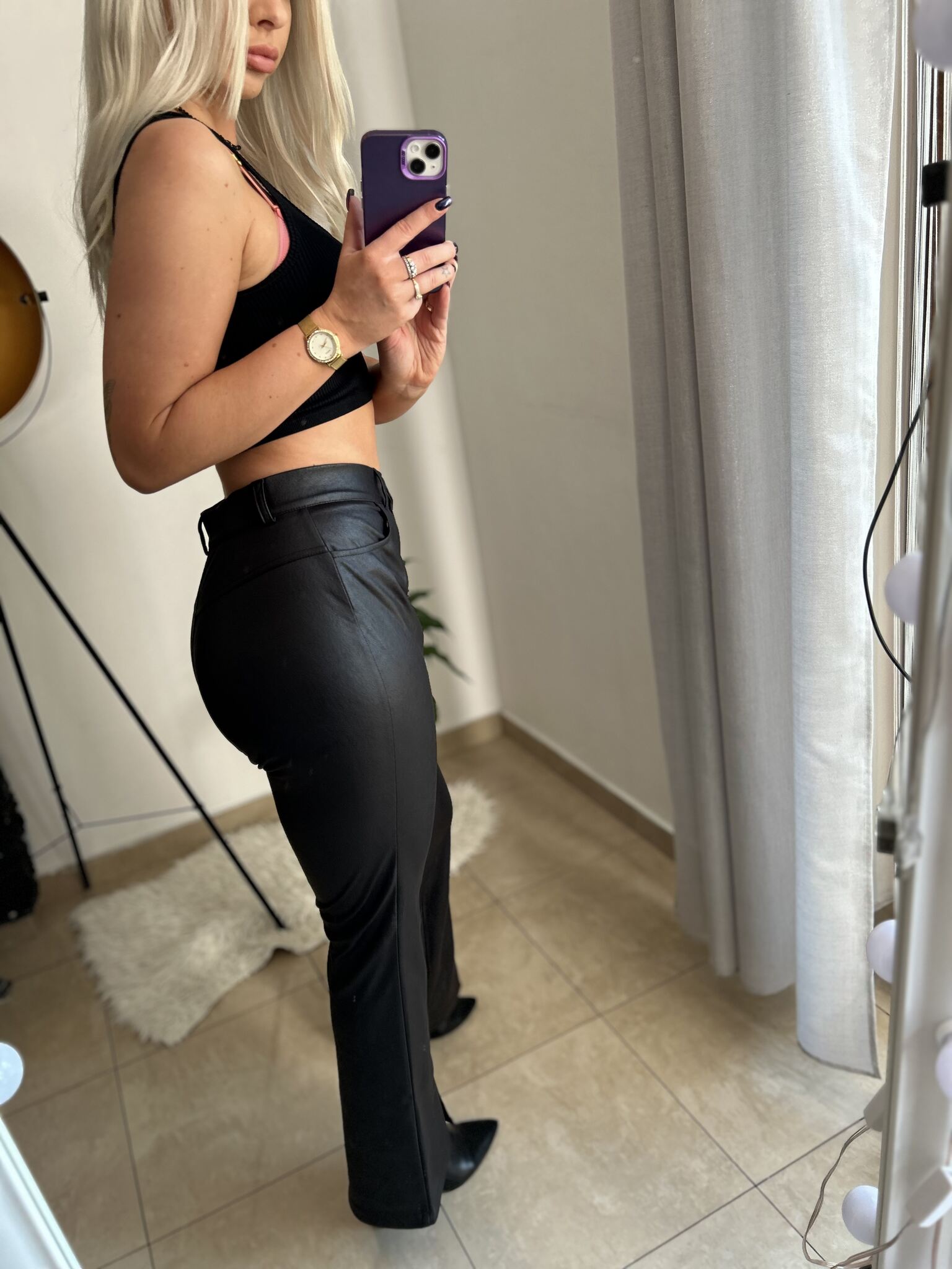 Spodnie Lorin to jeden z modniejszych krojów tego sezony! Po wielu latach znów wracają do łask spodnie typu dzwony ale oczywiście w świeższym i zmodyfikowanym wydaniu. Lorin to spodnie z poszerzoną nogawką i figlarnym rozcięciem do wysokości kostki na przodzie. Ale to nie wszystko! wzdłóż całej nogawki biegnie finezyjne potrójne stebnowanie, zaś z tyłu przeszycie i trójkąt uwydatniający pośladki. Najważniejsze! Ten model wykonany jest z ekoskóry która szturmem podbiła Wasze serca!